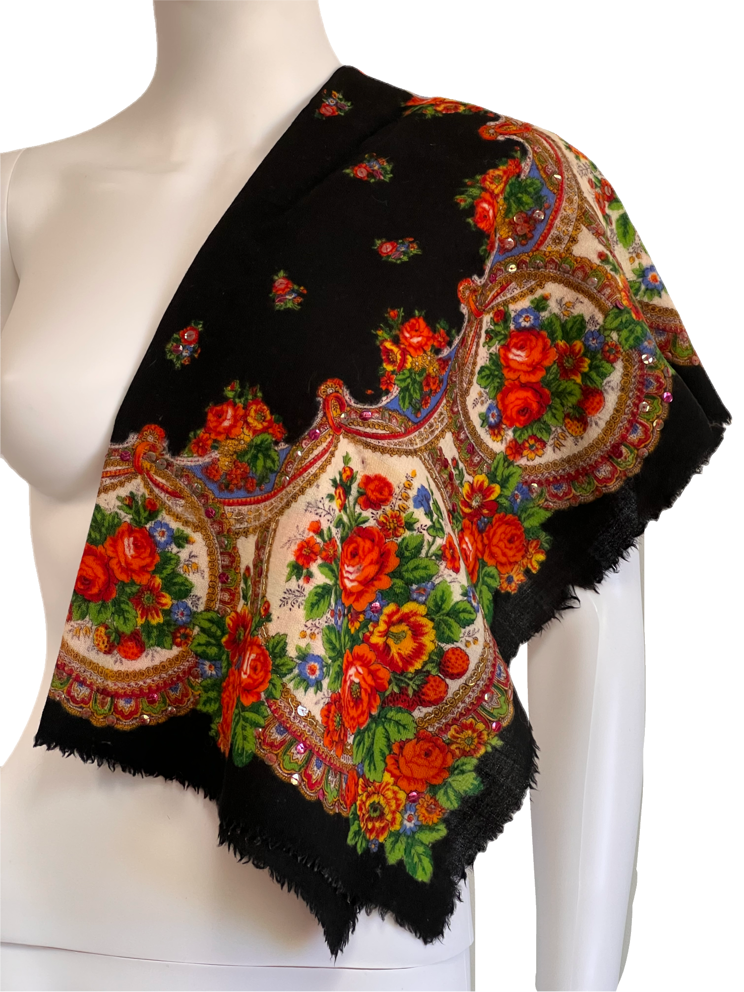 - Color: Black with Orange, Yellow, Red, and Blue Flowers