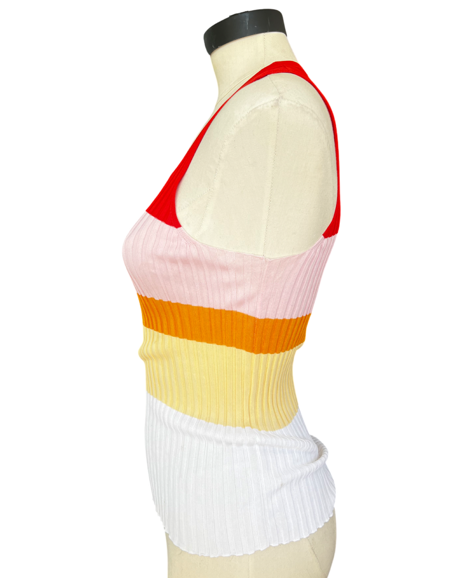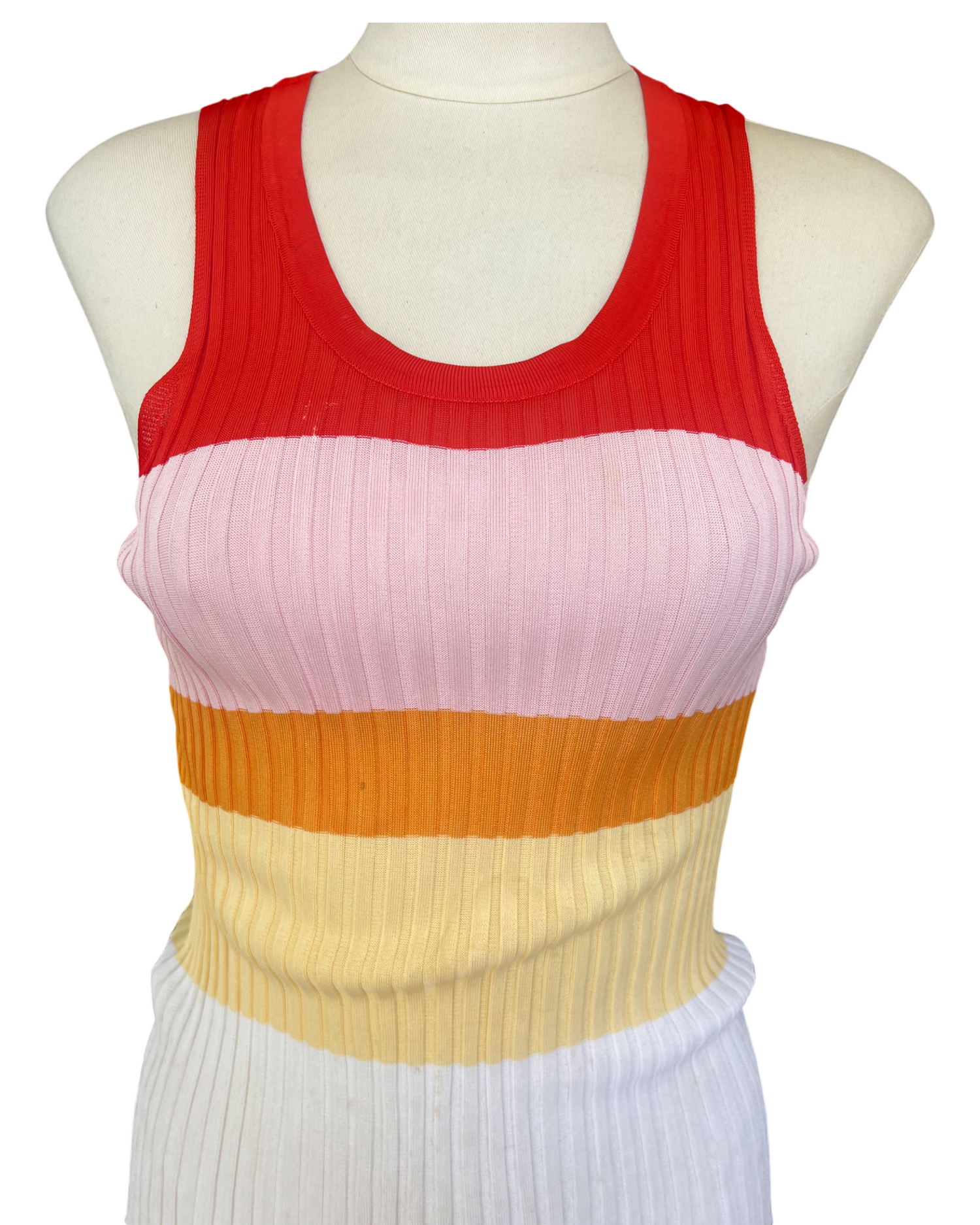 EMILIO PUCCI Striped Ribbed Knit in Red, Pink, Orange, and Yellow, Size Medium