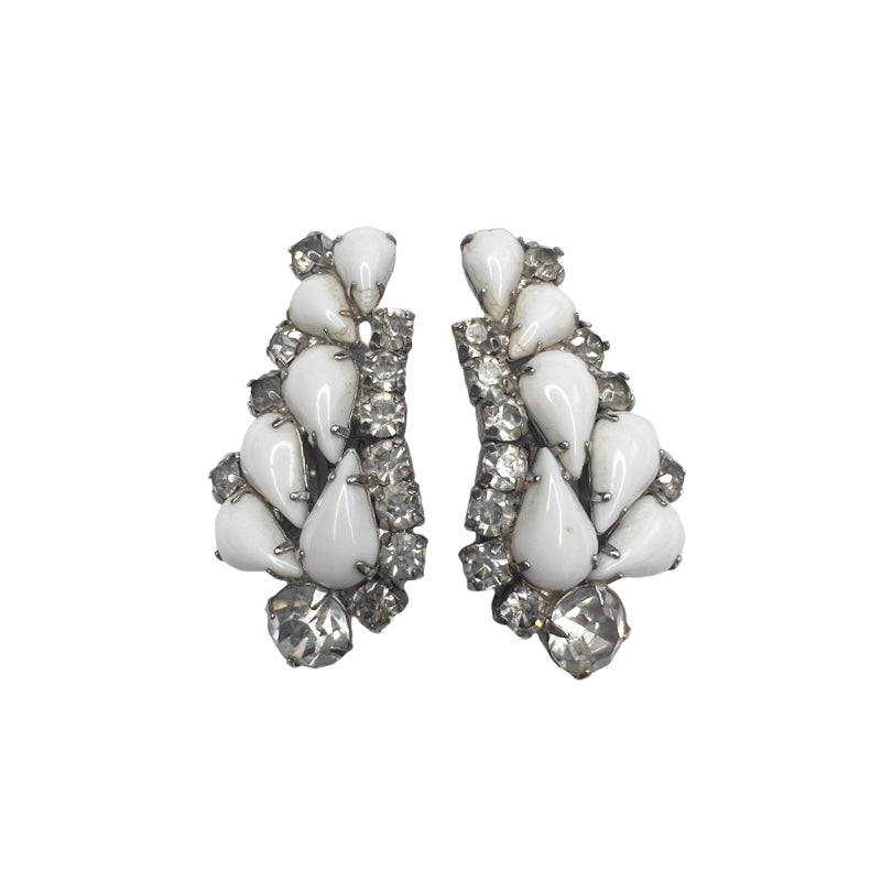 Gorgeous Vintage White and Silver Cluster Clip Ons