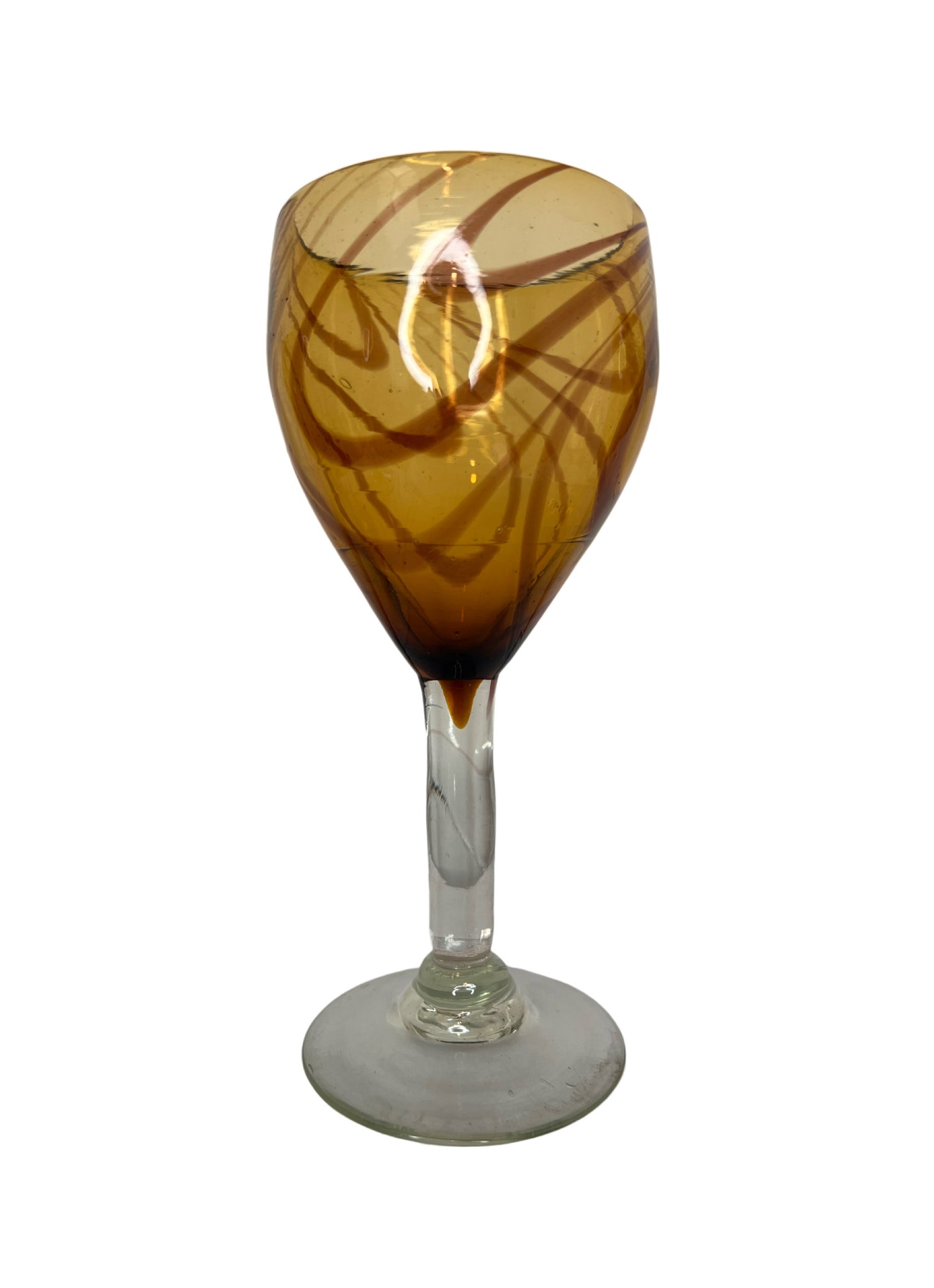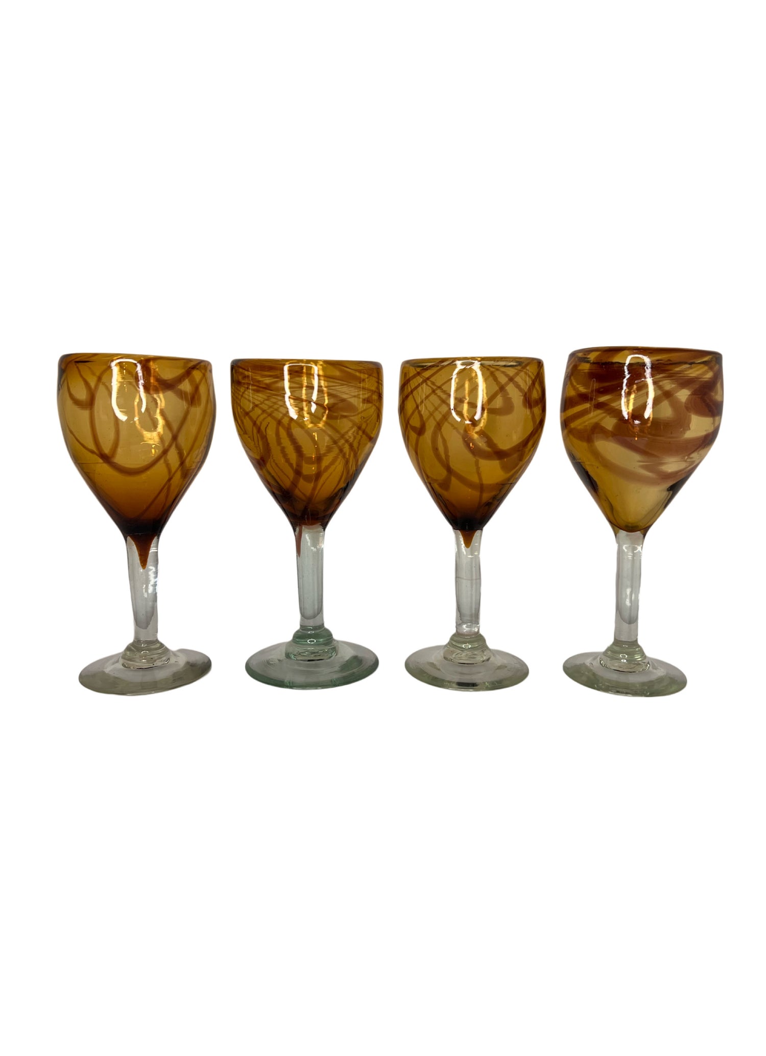 Mexican Hand Blown Amber Swirl Glass Set of 4