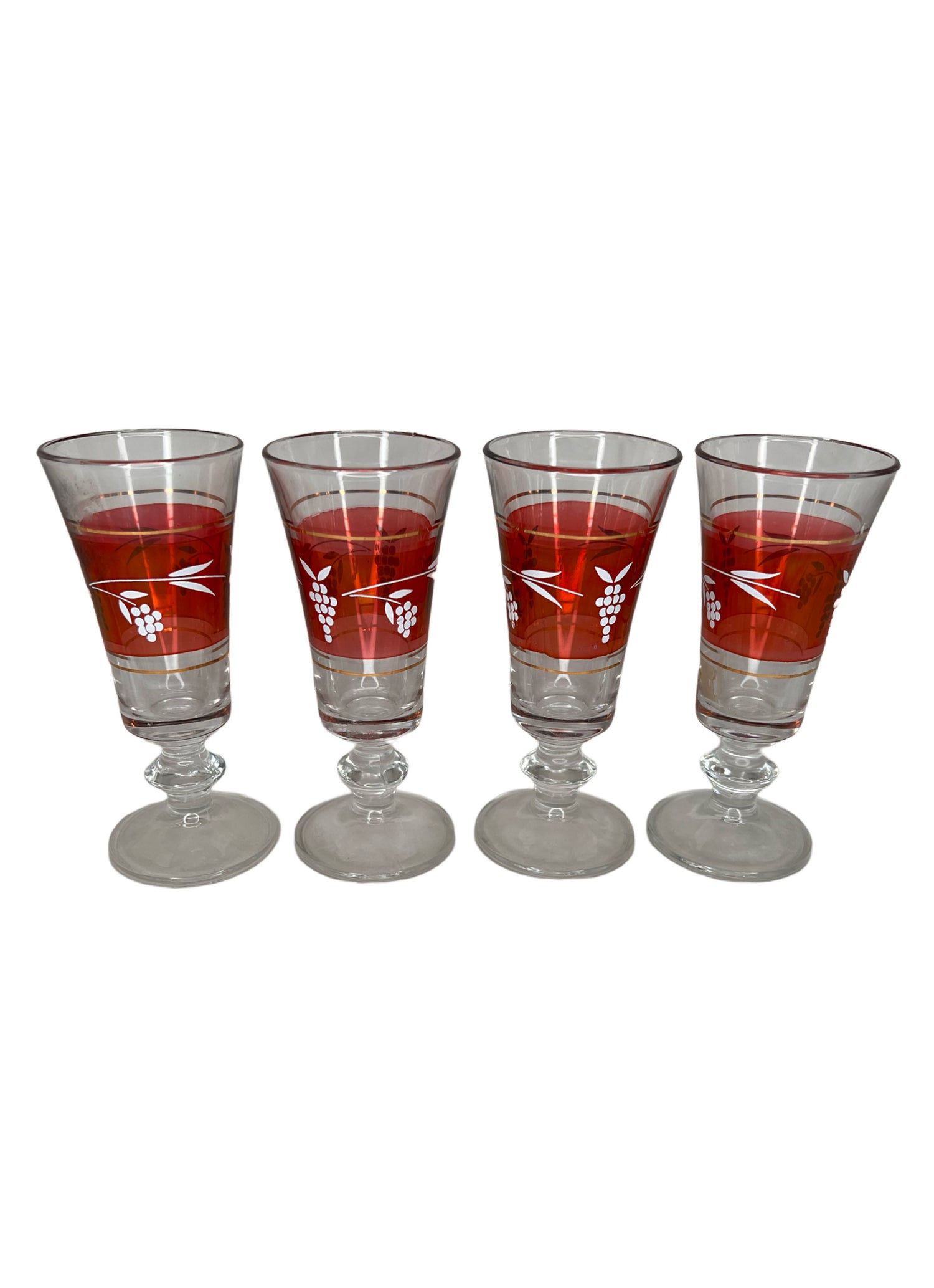 Set Of 4 Red Aperitif Glasses with Grapes