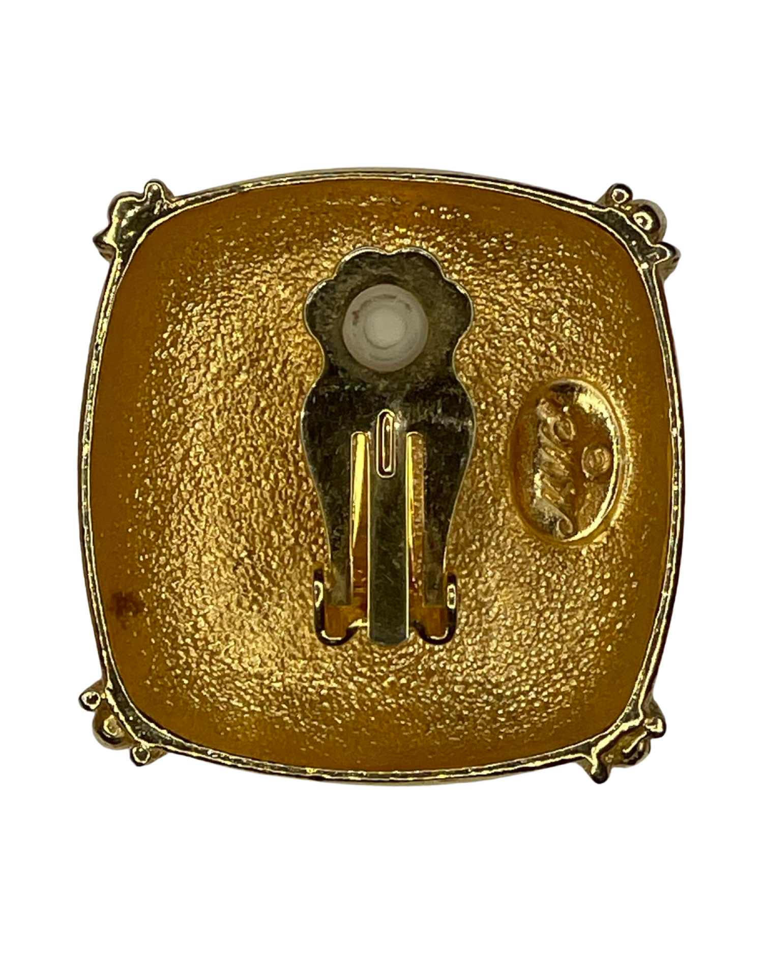 These vintage clip-on earrings are signed by MWS and crafted with a beautiful gold base metal. The earrings feature a clip-on closure, making them a great option for those without pierced ears. These earrings are perfect for adding a touch of vintage charm to any outfit.
