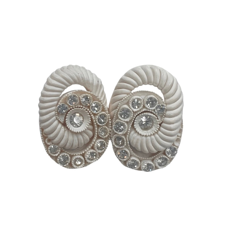 Vintage Snail Like Swirl Earrings with Rhinestones